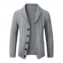 Men's Cardigan Sweater Cropped Sweater Knit Sweater Ribbed Knit Regular Button Up Pocket Plain Shawl Collar Fashion Classic Daily Wear Date Clothing Apparel Fall & Winter Black Light Grey M L XL