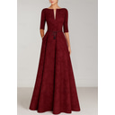 A-Line Floor Length Wedding Guest Dress Formal Dresses Flare Dress Mother of the Bride Dress Half Sleeve V Neck Elegant Vintage Wedding Formal with Bow(s) Strappy |