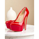 Red and Black Patent Leather Platform Stiletto Heels with Cross Straps - Bold Women's Party Shoes |