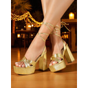 Women's Yellow Platform High Heel Peep Toe Sandals with Ankle Strap and Bow Detail, Stylish Party Shoes for Nightlife Events |