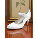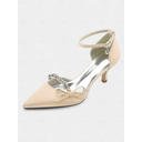 Women's Champagne Satin Mary Jane Heels with Crystal Buckle, Elegant Pointed Toe Pumps for Cocktail Parties |