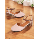 Women's Light Blue Two-Tone Ankle Strap Block Heel Pumps – Round Toe Closed-Toe Dress Shoes with Charm Pendant for Office & Casual Wear |