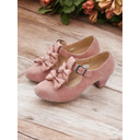 Women's Pink Mary Jane Heels with Double Buckle Strap and Bow Detail - Cute Retro Style Block Heel Shoes for Casual and Dressy Occasions |