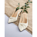 Women's Ivory Pointed Toe Slingback Kitten Heels with Pearl Embellishment – Elegant Satin Wedding Shoes for Romantic Dates and Garden Parties |