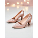 Women's Glossy Nude Block Heel Pumps - Pointed Toe Party Shoes for Nightlife, Cocktail Evenings and Elegant Outfits |