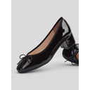 Women's Black Patent Leather Block Heel Ballet Pumps with Bow - Elegant Round-Toe Shoes for Work, Office & Formal Events |