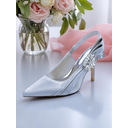 Women's Satin Slingback Wedding Heels with Crystal Embellishments - Elegant Bridal Slingbacks for Special Occasions |