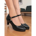 Women's Black T-Strap Platform Heels with Chunky Block Heel – Elegant Closed-Toe Pumps for Formal Events and Parties |