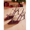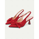 Women's Green and Red Slingback Stiletto Heels - Pointed Toe Dress Shoes with Bow Detail for Cocktail Parties and Holiday Celebrations