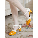 Women's 1950s Vintage T-Strap Mary Jane Heels – Two-Tone Brogue Low Heel Shoes for Retro Parties, Office Wear, and Special Occasions