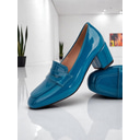 Women's Blue Glossy Patent Leather Chunky Heel Loafers – Modern Square Toe Slip-On Work Shoes for Office Professionals