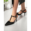 Women's Brown T-Strap Pointed Toe Heels - Elegant Slingback Dress Shoes with Buckle for Office Wear and Daytime Dates