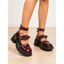Women's Burgundy Patent Leather Platform Mary Jane Heels - Chunky High Block Heels with Adjustable Strap for Party or Fashion Events