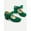 Women's Green Suede Mary Jane Shoes with Bow Detail - Perfect for Office, Daily Wear, and Special Occasions |
