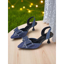 Women's Rhinestone Bow Slingback Heels - Sparkly Pointed Toe Party Shoes for Nightlife, Clubs and Cocktail Events |