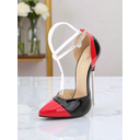Women's Red and Black Patent Leather Pointed Toe Stiletto Heels with Clear Ankle Strap - Sexy Nightlife and Christmas Party Shoes |