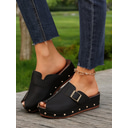 Women's Peep-Toe Wedge Mules with Buckle Straps and Studded Accents – Comfortable Slip-On Sandals for Casual Wear and Summer Outings |