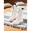 Korean Idol Inspired Pop Star Costume Shoes-Trendy White and Brown Fashion Boots for Girl Casual and Street Style