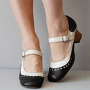 | I love how these chunky-heeled, two-tone flats elevate my look with their unique design and stylish flair! | |