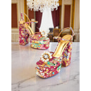 Women's Floral Platform High Heels – 1920s Colorful Baroque-Style Sandals with Pearl Embellishments for Parties, Stage Shows, and Glamorous Occasions |