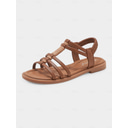 Women's Brown Strappy Flat Sandals with Woven Detailing – Stylish and Comfortable for Casual or Vacation Wear |