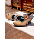 Women's 1930s Vintage Floral Leather Mary Jane Heels – Retro Chunky Heel Shoes with Flower Accent for Formal Events, Office, and Casual Wear |