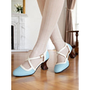 Women's Light Blue 1920s Vintage Gatsby Crisscross Strap Heels-Retro Style Faux Leather Pumps with Flared Heels for Office, Parties & Inspired Looks |