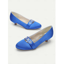 Women's Blue Satin Kitten Heels with Rhinestone Embellishment – Elegant Bridal Shoes for Weddings and Formal Occasions |