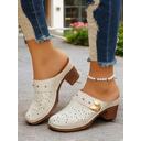 Women's Floral Perforated Mules with Block Heel and Studded Details - Comfortable Slip-On Clogs for Casual Outings and Spring Fashion |