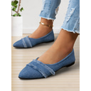 Women's Denim Pointed-Toe Flats with Frayed Detailing - Casual and Chic Shoes for Everyday Outings and Spring Fashion |