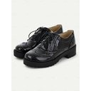 Women's Black and White Brogue Oxford Shoes – Patent Faux Leather Lace-Up, Chunky Sole, Vintage Style for Formal and Casual Wear |