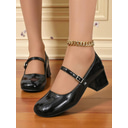 Women's Red Patent Faux Leather Mary Jane Heels – 1950s Vintage Block Heel Dress Shoes with Buckle Strap for Girls, Cosplay and Party Outfits