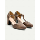 Women's Elegant Vintage T-Strap Chunky Heel Pumps - Brown Brogue Leather Heels for Oktoberfest, Retro and Formal Wear