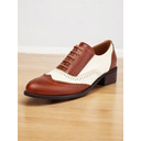 Women's Tri-Color Brogue Oxford Shoes with Wingtip Design and Low Heel - Vintage Formal Footwear for Office and Special Occasions