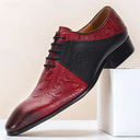 Men's Premium Cowhide Leather Oxfords, Classic Red with Brogue Detailing, Suitable for Business and Formal Events |