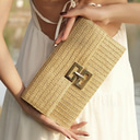 Women's Elegant Gold Straw Clutch with Designer-Style Closure - Perfect for Evening Events |