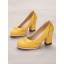 Women's Yellow Vintage-Inspired Heels with Brogue Detailing, Chunky Heel, and Slip-On Design, Perfect for Workwear and Special Occasions |