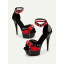 Women's 1980s Gothic Platform Stiletto Heels – Black and Red Peep-Toe High Heels with Studded Straps and Bow Detail for Clubwear, Parties, and Cosplay |