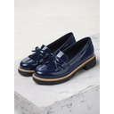 Women's Burgundy Patent Leather Loafers with Fringe Tassel Detail and Chunky Heel, Perfect for Office Wear and Casual Outfits |
