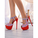 Women's Red White and Blue Striped Stiletto Platform Heels – Bold Patriotic Nightlife Sandals for Parties and Clubbing |