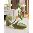 Women's 1950s Green Satin Mary Jane Block Heels – Elegant Cross-Strap Vintage Shoes for Weddings, Parties, and Formal Events |