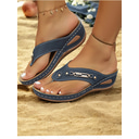 Women's Comfort Wedge Thong Sandals, Cushioned Platform Slip-On Summer Beach Walking Sandals |