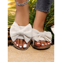Women's Black Studded Bow Flip-Flops – Chic Beach Sandals with Comfortable Flat Sole for Summer Casual Wear |