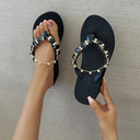 Women's Rhinestone Wedge Flip Flop Sandals - Platform Gem Slides for Beach, Parties and Casual Date Looks