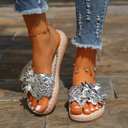 Women's Colorful Bohemian Flower Sandals – Handmade Woven Slip-On Flats for Beach & Summer Casual Wear