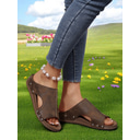 Women's Rustic Peep-Toe Slide Sandals with Rivet Trim, Vintage Comfort Slippers for Garden Walks, Casual Homewear and Relaxed Outings
