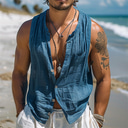 Men's Tank Top Vest Top Undershirt Sleeveless Shirt Sleeveless Collarless Summer Plain Fashion Designer Basic Buttons Vacation Street Going out Blue Top Tee for Men |