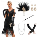 Set with Flapper Dress Feather Headband Faux Pearl Necklace Long Opera Gloves Cigarette Holder Earings Women's Roaring 20s 1920s Outfits Cocktail Dress Gatsby Flapper Girl Masquerade Party Costumes |