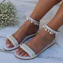 Women's Wedding Shoes Bling Bling Sparkling Shoes Sparkly Sandals Bridal Shoes Rhinestone Imitation Pearl Flat Heel Open Toe Faux Leather Ankle Strap White