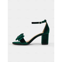 Women's Green Velvet Block Heel Sandals with Satin Bow and Ankle Strap – Perfect for Wedding, Parties or Formal Events